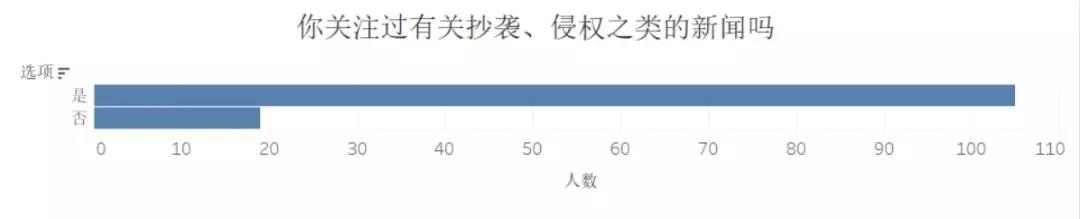 除了以上谈到的侵权问题,版权领域还存在许多与抄袭相关的问题。抄袭与侵权是不同的,侵权是直接把(部分)原作品转载或商用,而抄袭是盗用他人的作品然后写上自己的名字,或是截取他人作品的一部分融入自己的作品中。以下是本次调查中,人们对抄袭行为的认知。